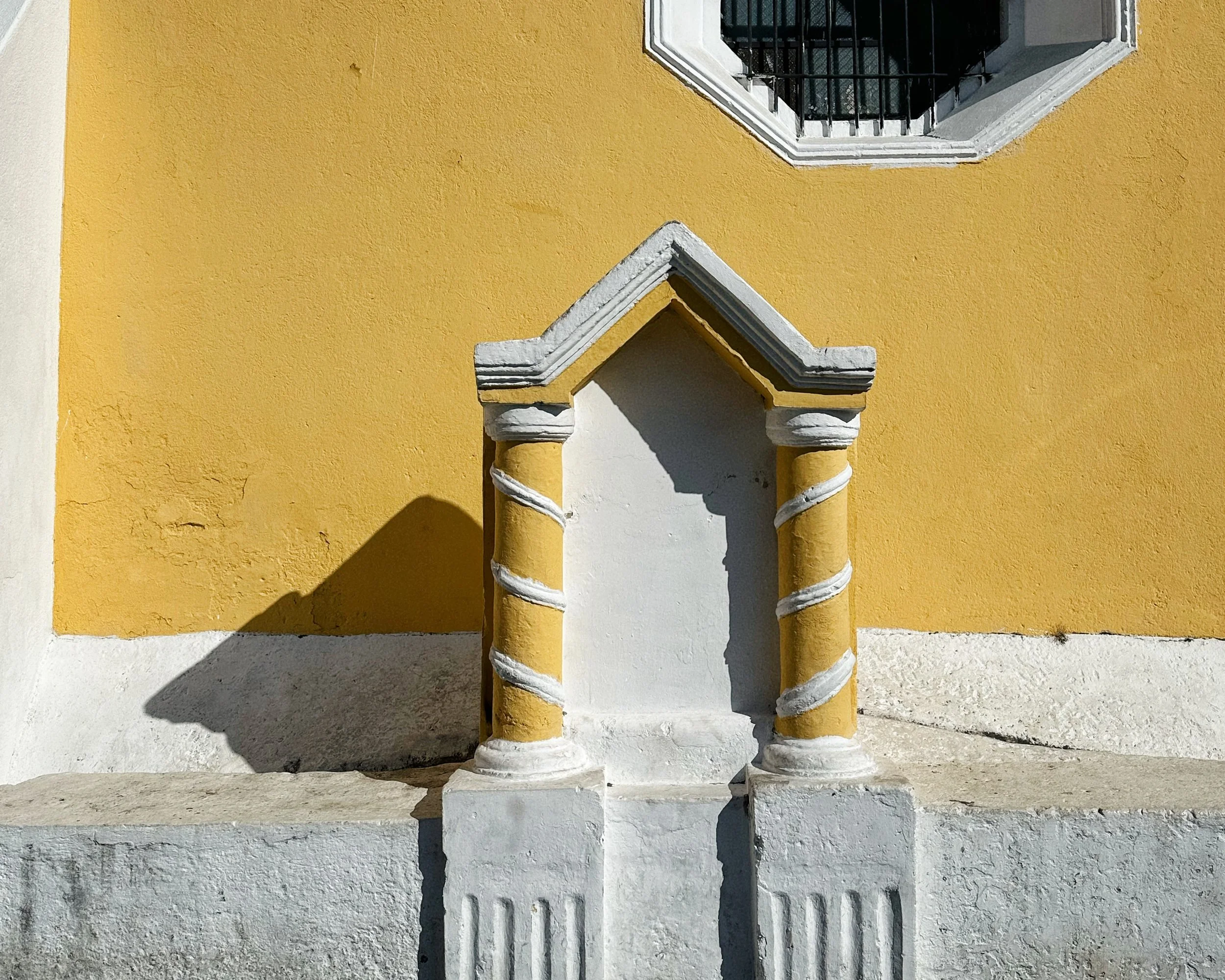 It is Sunday morning. Local families are coming in to attend mass. An old man dressed in grey trousers, white button down shirt and a black jacket with ornamental embroidered lapels is flanked by two younger women. As they are about to enter, I greet them and ask for the name of the town. “San Miguel Escobar”, he says. “Where are you visiting from? You speak very good Spanish for an American”. “Actually, like yourself, I’m Guatemalan. But my family and I are visiting from Korea.” “Korea! Our priest is Korean. He speaks with a funny accent you know, even though he’s been here for many years”.